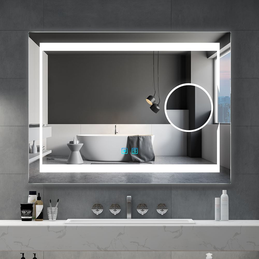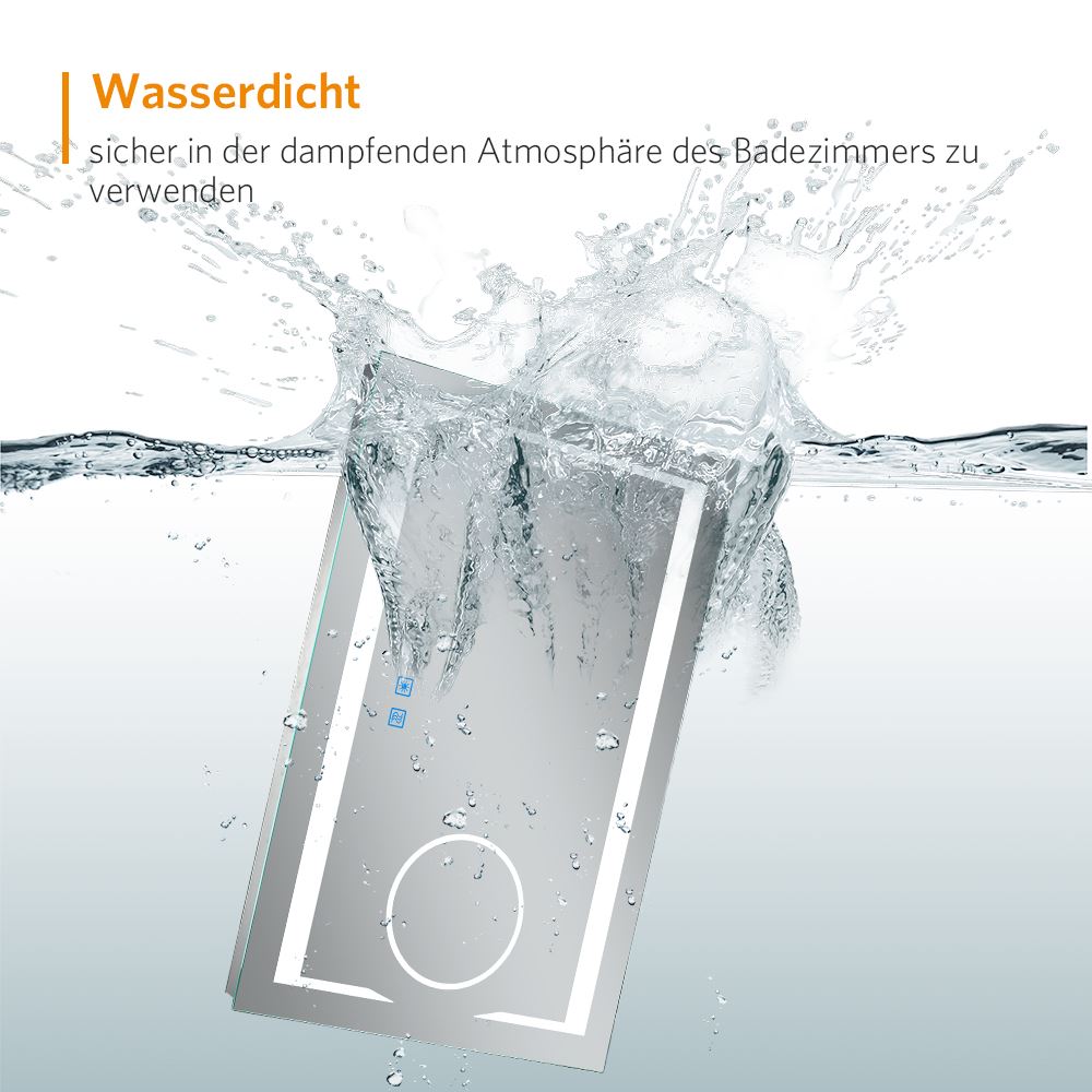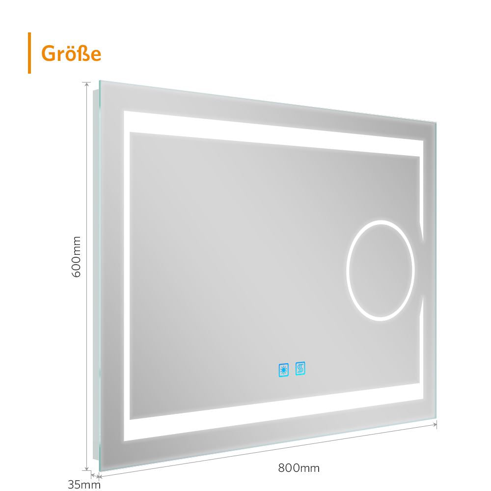 - 【Multifunktionen】80X60cm(B*H), rechtiges LED Licht,Bleifreies Glas, Aluminium Rahmen, Antibeschlag, Touch-Schalter, Helligkeit dimmbar, 6500K kaltweiß