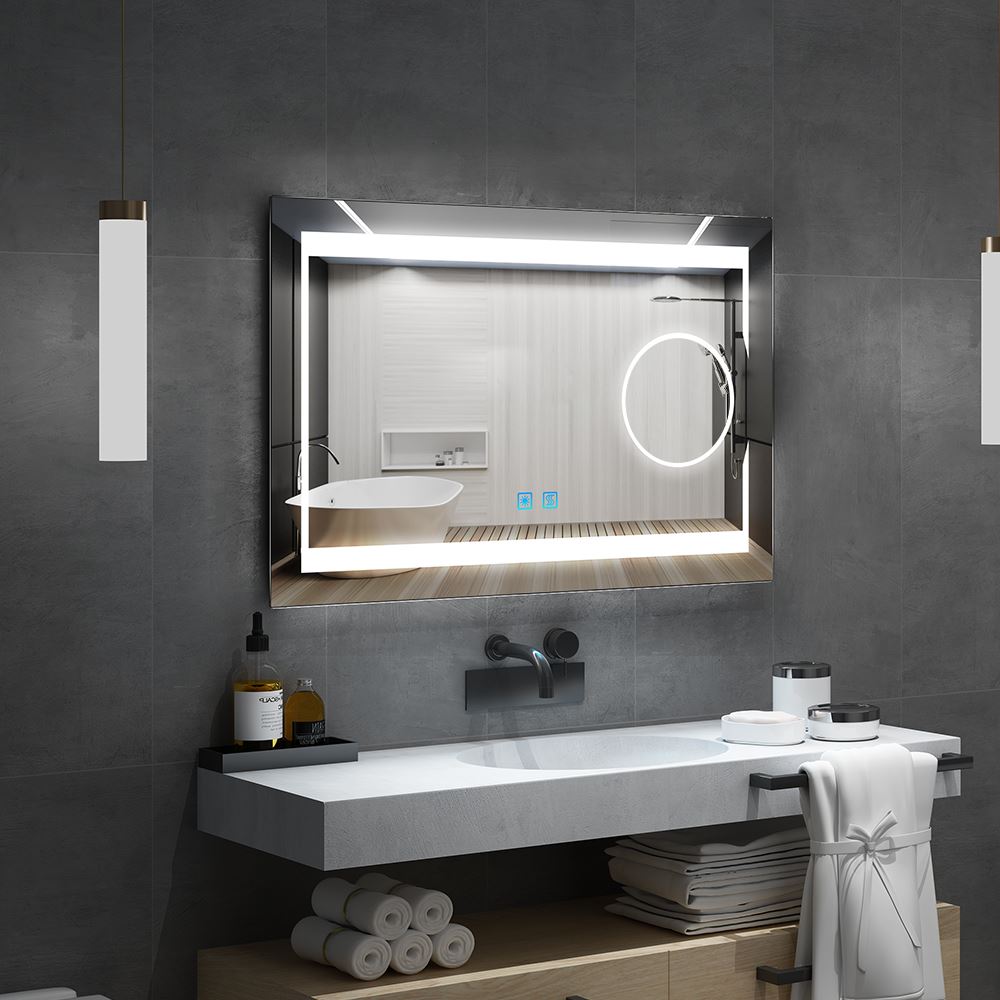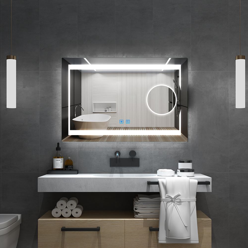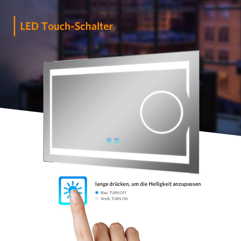 80x60cm LED Badezimmer Spiegel mit Touch-Schalter 3-Fach Lupe (Nein Spiegelschrank)