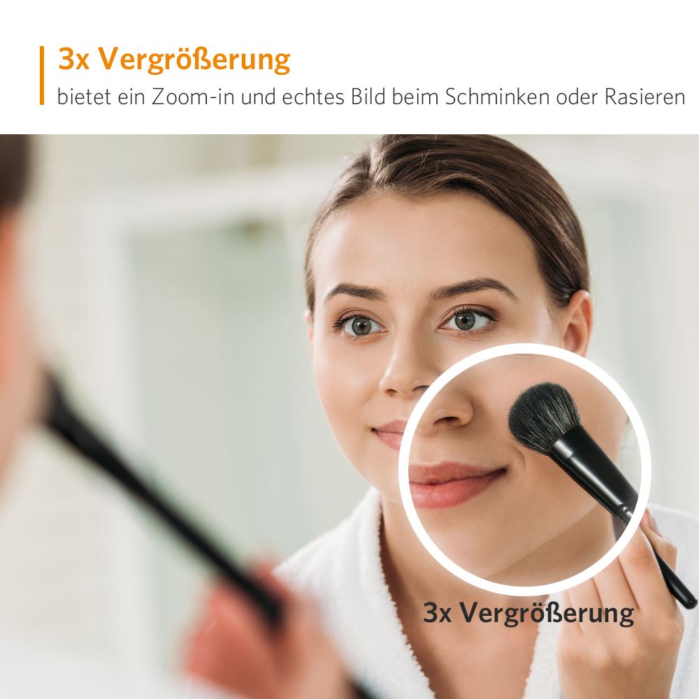 - 【3-Fach Vergrößerungs】Mit einem runden mit LED beleuchteten vergrößerten Spiegel auf der rechten Seite, kann man die echte Reflexion ohne Verzerrung haben, optimal für Schminken und Rasieren.