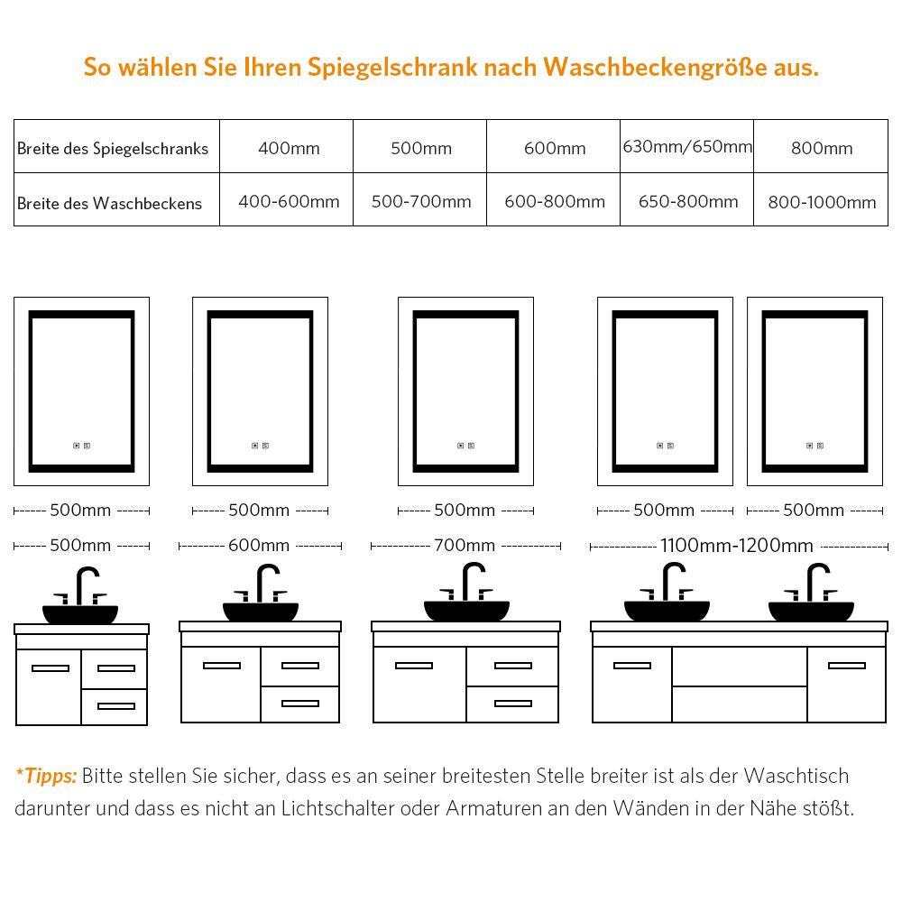 - 【Antibeschlag】Innerhalb der Tür besteht ein Heizplatter , mit dem Touch wird es funktionieren.Perfekt für Sie Make-up oder Rasur im Bad zu tun.