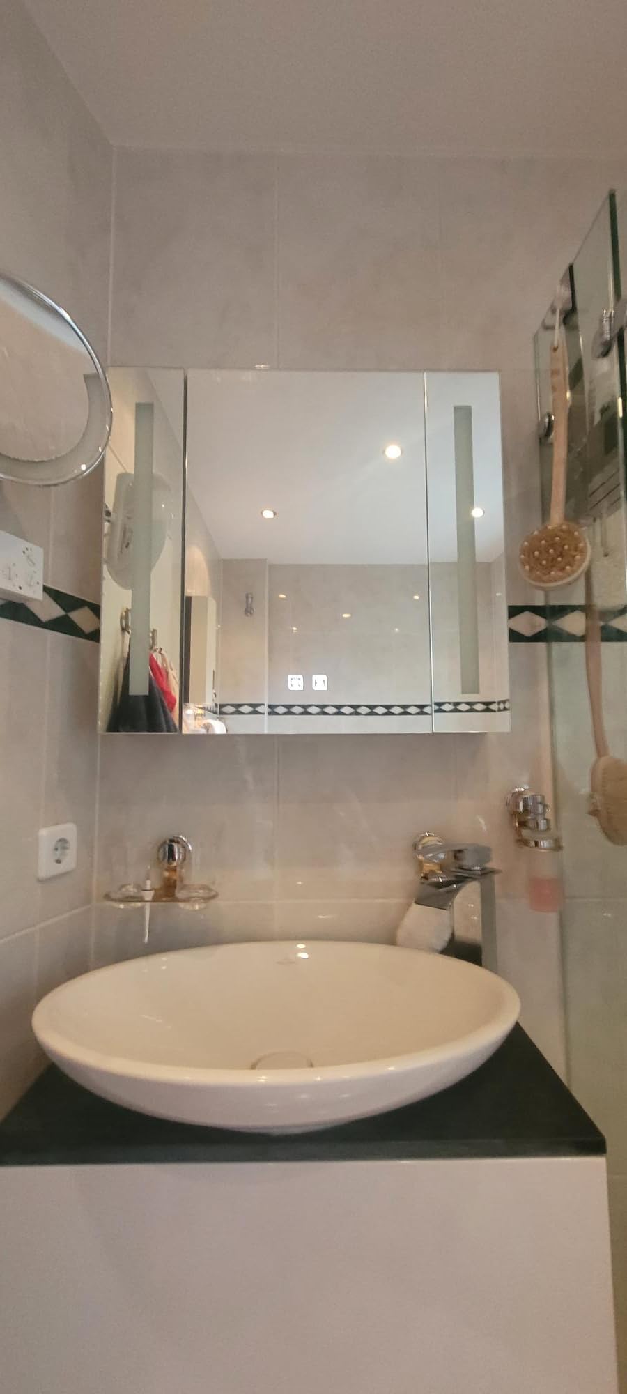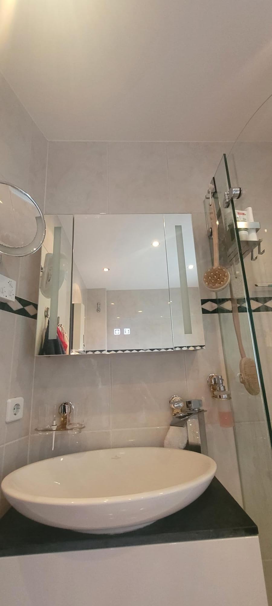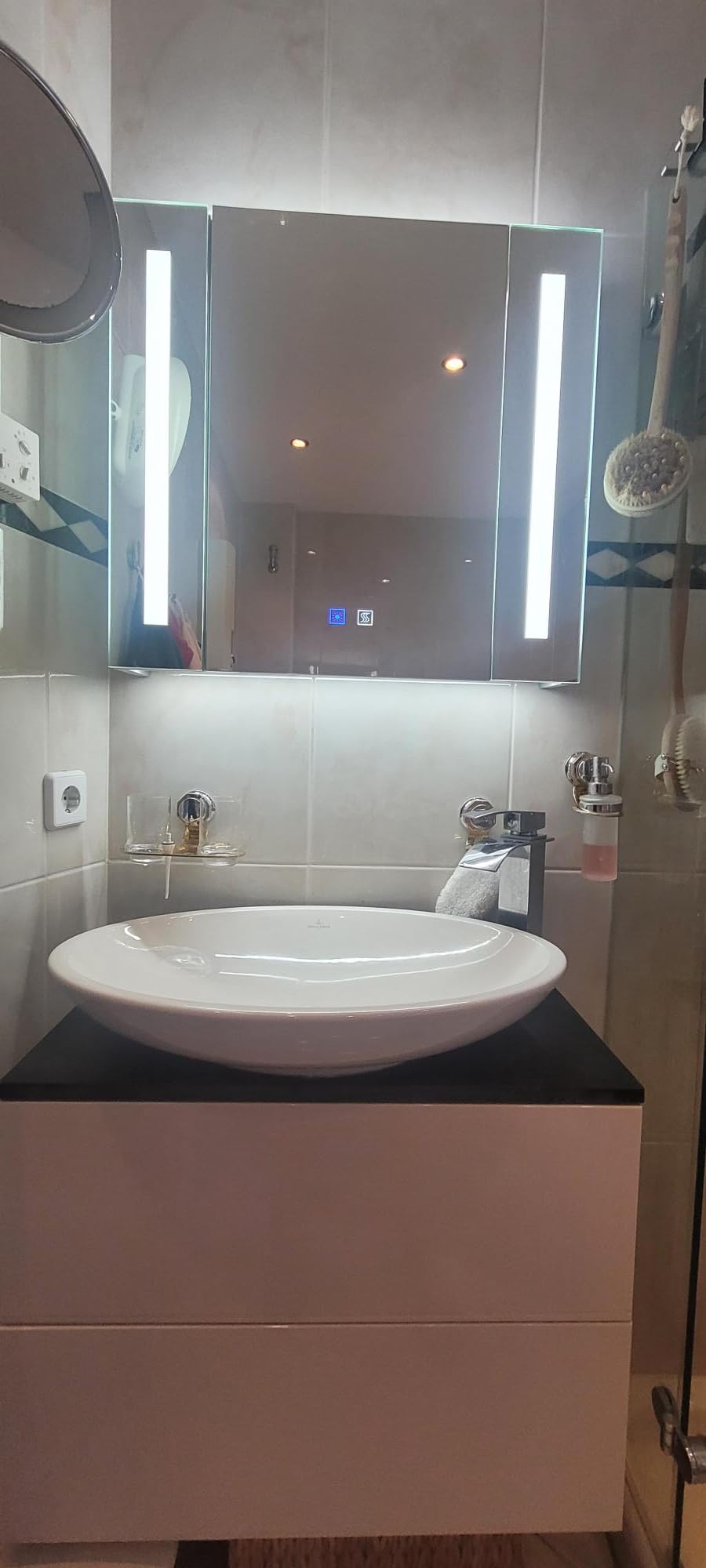 Der Schrank musste nur noch an die Wand.... optisch ein Highlight, kein beschlagener Spiegel nach dem duschen