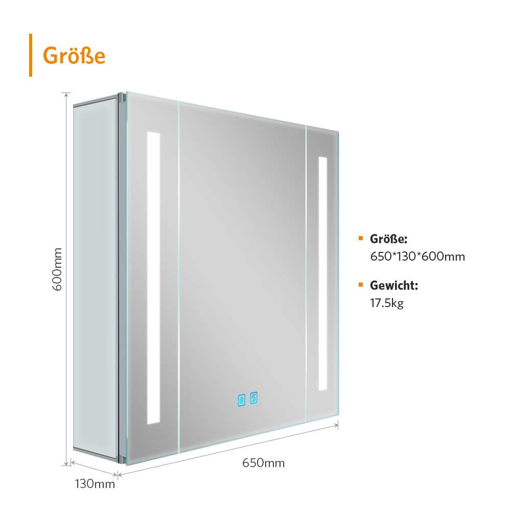 - 【Produktinformation】65x60X13cm(BxHxT); Rostfreier Aluminiumrahmen;Energiesparender LED-Streifen; Umweltfreundlicher HD-Spiegel; flexible Stauraum für Kosmetik, Midikament und Lebensmittel wie Zahnbürste, Zahnpasta usw.